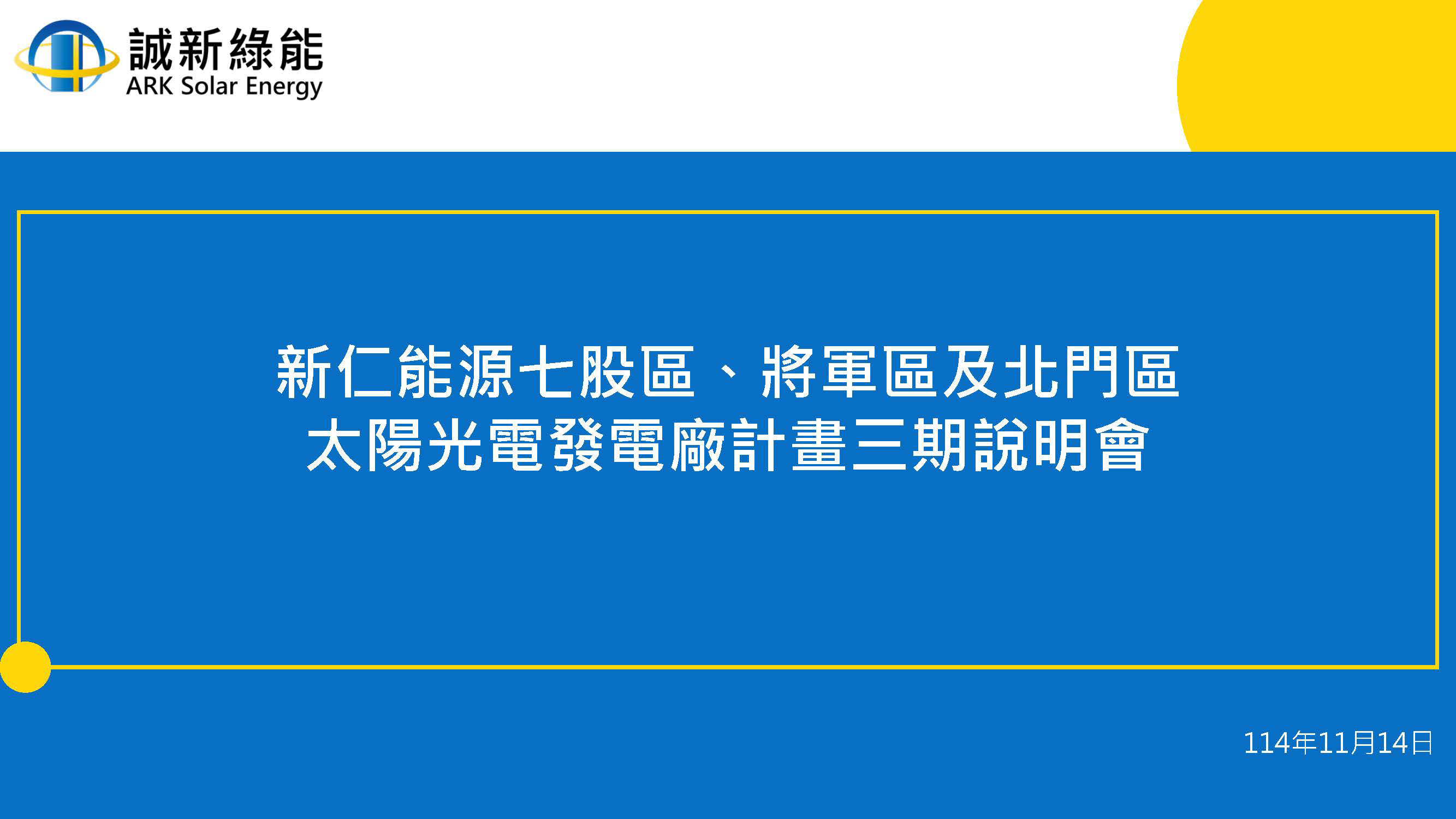 新仁能源七股區、將軍區及北門區太陽光電發電廠計畫三期說明會